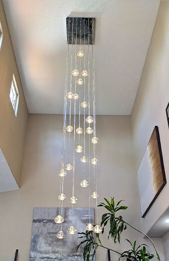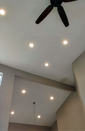 We install all types of lighting including downlights, pendant lights, ceiling-mounted fixtures, wall lights, and strip lighting for new homes and renovations.